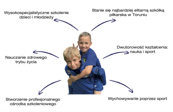 Nasza Akademia o profesjonalna szkółka piłkarska dla każdego dziecka, którego marzeniem jest zostać profesjonalnym piłkarzem. W Akademii zajęcia prowadzą licencjonowani Trenerzy piłki nożnej, w oparciu o nowoczesny program szkolenia które nie odstają od standardów znanych z zachodniej Europy. Akademia szkoli dzieci i młodzieży od 2 do 19 lat. w której chłopcy doskonalą umiejętności piłkarskie i budują charakter w oparciu o wartości, takie jak szacunek, tolerancja, uczciwość, pracowitość oraz sumienność. Każda chwila codziennej pracy nad sobą przybliża naszych wychowanków do wspólnego celu – stawania się lepszym zawodnikiem, ale przede wszystkim lepszym człowiekiem.